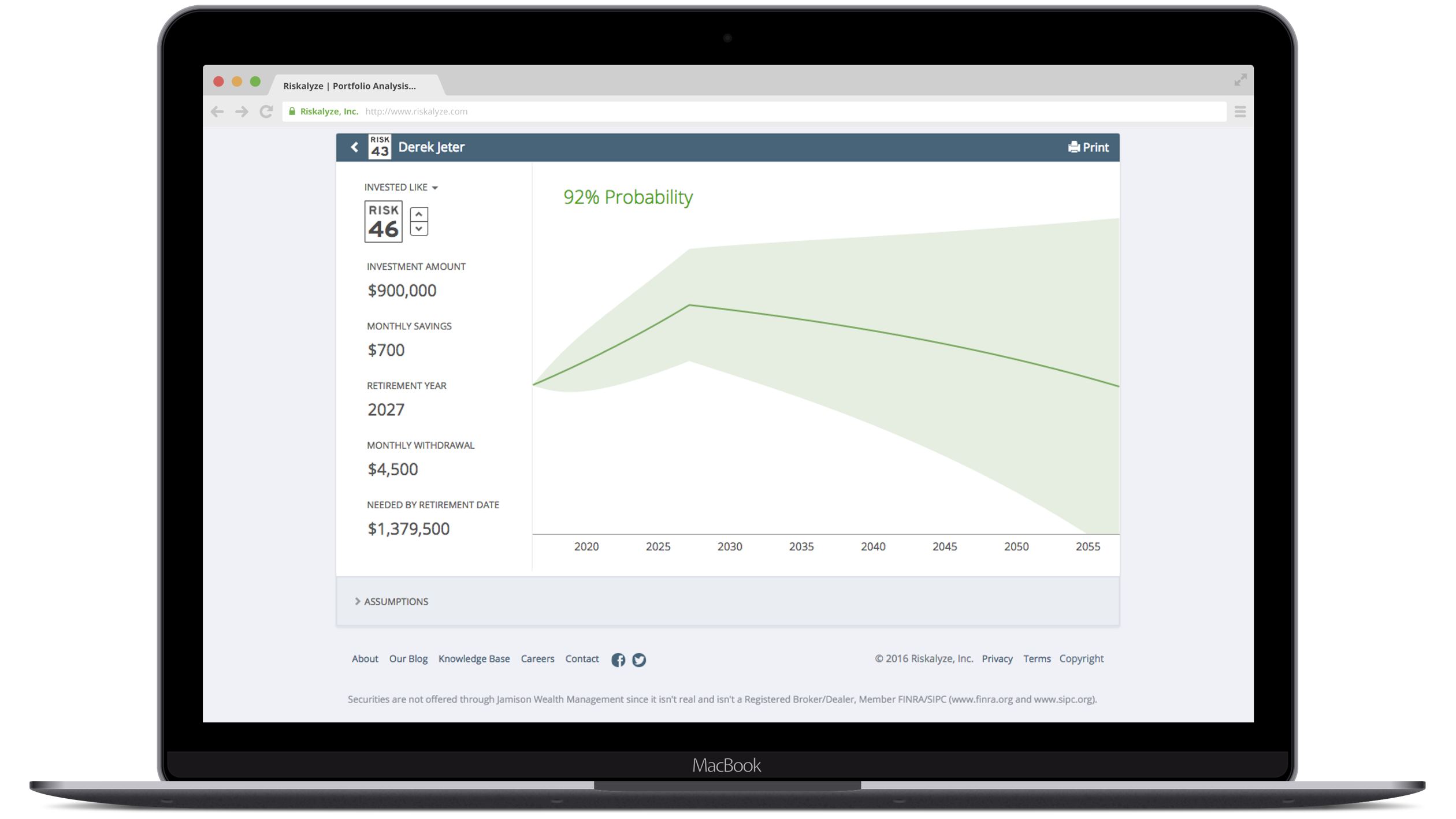 We can chart a path to retirement using a simple, intuitive approach on our Retirement Map Report. We’ll visualize the probability of a successful retirement and adjust in realtime.